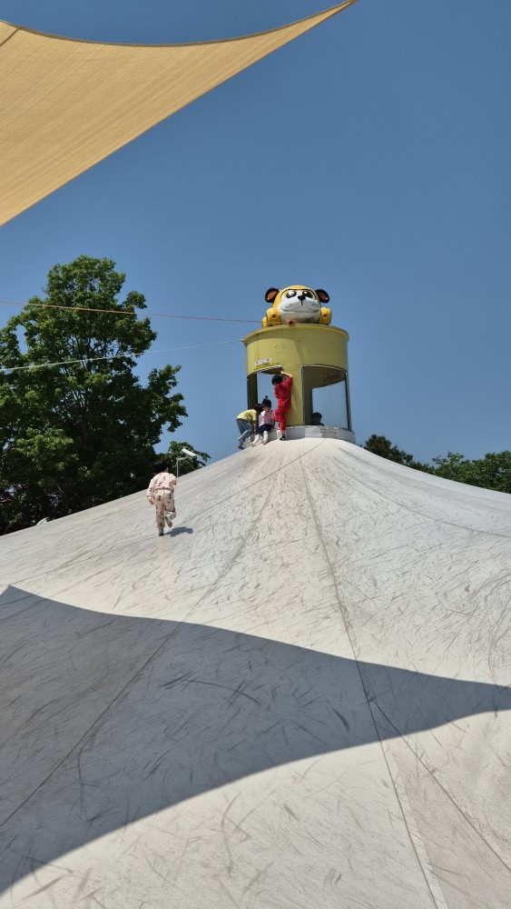 초 6들은 자연스럽게 패스한 곳. 초 2는 이곳에서 한동안 놀았는데, 서울랜드에서는 맘껏 오르고 맘껏 뛰고 물놀이까지 즐길 수 있는 신개념 올인원 플레이파크라고 소개하고 있어요. 신개념이긴 합니다. 왼쪽은 물 없이 이용 가능하고 오른쪽은 물놀이를 할 수 있는 공간인데요. 우선 오른쪽은 아쿠아슈즈 없인 들어가면 안 된다고 했어요. 5월에 도저히 물놀이는 할 수 없을 것 같아 저는 안 챙겨갔어요. 제가 봤을 땐 2~3명 정도 이용하는 것 같더라고요. 여름 되면 바글바글할 것 같긴 합니다. 그리고 젖은 아이들이 놀이터에 올라가기 시작하면 이용하지 않는 아이들도 비자발적으로 젖게 될 것 같아요.(신개념. 따로 또 같이...) 그냥 워터 파크를 가심이 나을 듯도 싶어요.